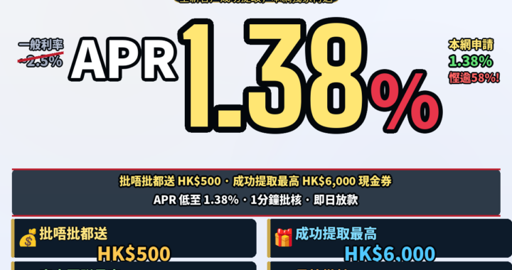 WeLend 私人貸款 優惠:APR 低至 1.99%,公務員低至1%,30萬以下免入息免住址證明 | 限時可獲最高 HK$38,600 三重獎 !