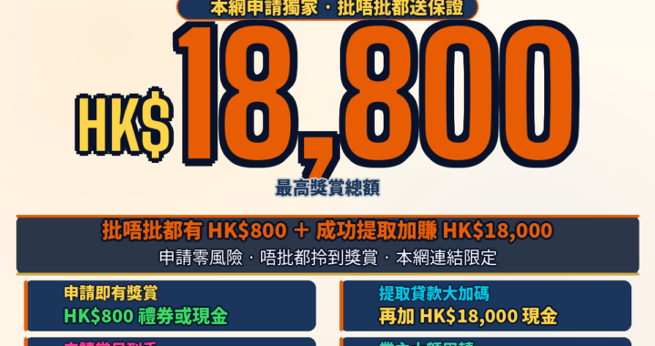 UA iMoney(亞洲聯合財務)特快網上私人貸款 2026:年利率低至 1.10%,全程網上 24小時申請免露面,FPS 即日過數;本網申請批唔批都送 HK$800,成功提取加享 UA 官方現金獎高達 HK$18,000,新舊客均可申請 !