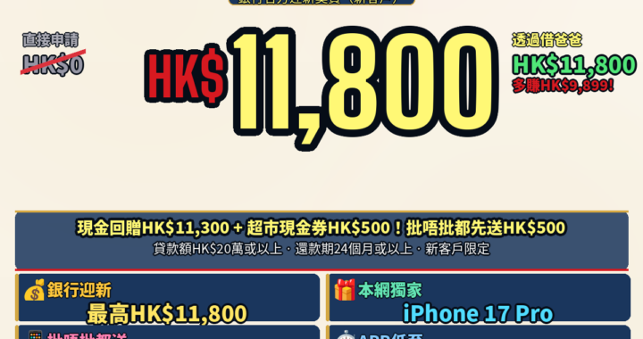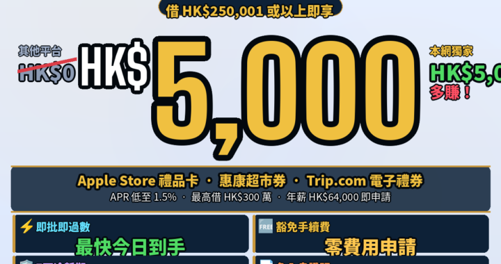 渣打私人貸款全攻略:APR低至1.85%零手續費!獨家送高達HK$8,000禮品卡 或 HK$8,599 iPhone 17!最高借月薪18倍(HK$400萬)+7天冷靜期 !