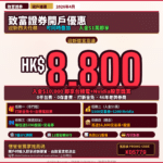 致富證券開戶迎新獎賞:入金HK$10,000可享HK$200台積電及HK$200 Nvidia股票,另送30天打新全免卡,0平台費0存倉費,美股低至US$0.99/筆,月供首HK$10,000免佣
