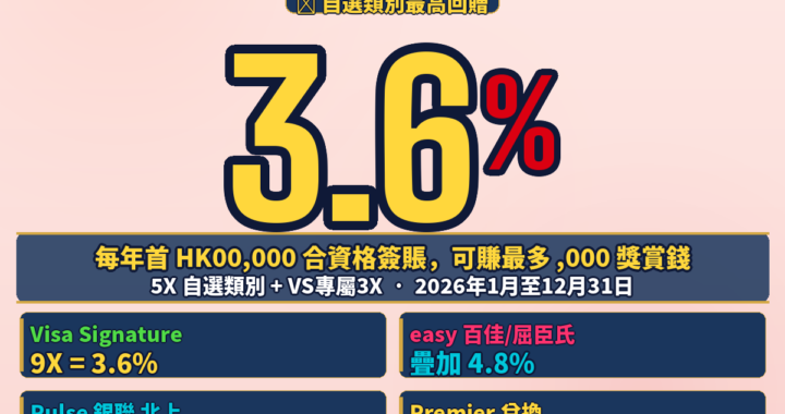 滙豐最紅自主獎賞2026回贈計算:Visa Signature 9X=3.6%最高、easy百佳屈臣氏4.8%,iPhone策略年賺$3,600