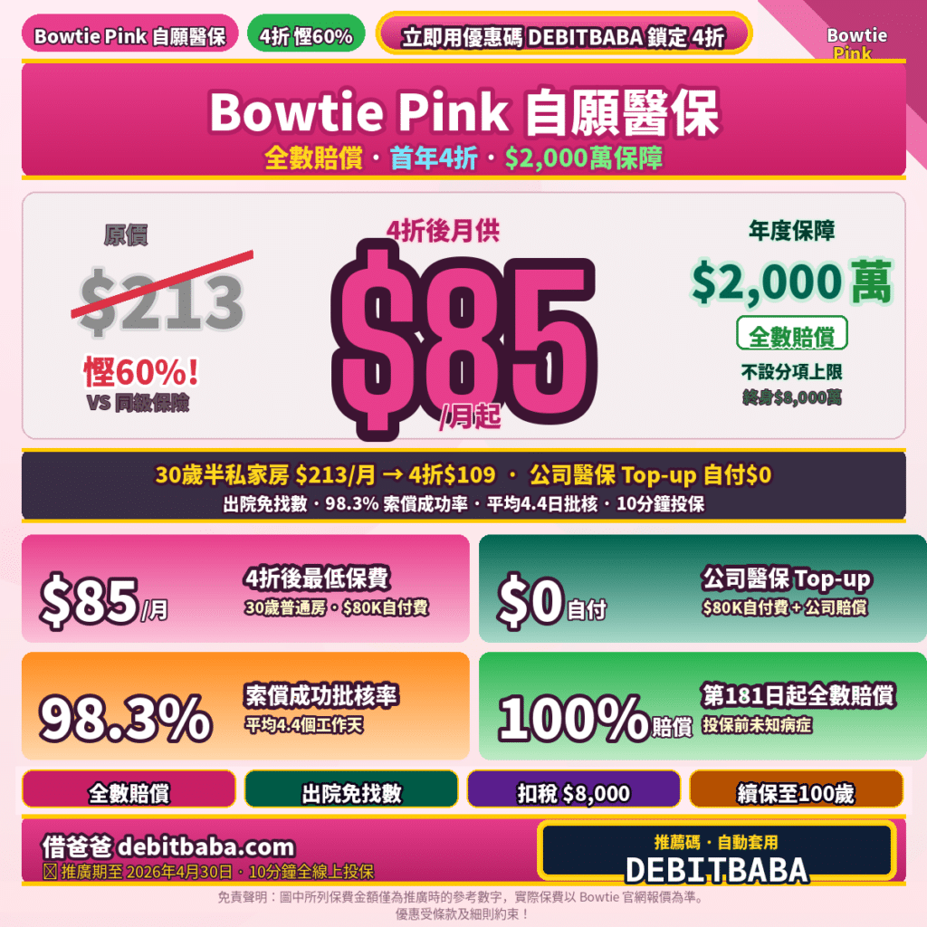 Bowtie 定期危疾保(早期及多重危疾保)保費及保障:42種危疾、最高600%保額,首年4折月供$84起