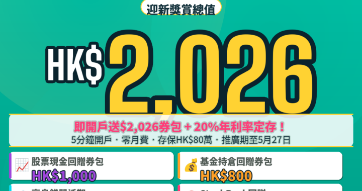 華泰國際漲樂全球通開戶優惠:入金8萬留存享HK$1,400現金 +HK$600返現券,全年港美股0佣金至2026年底 !