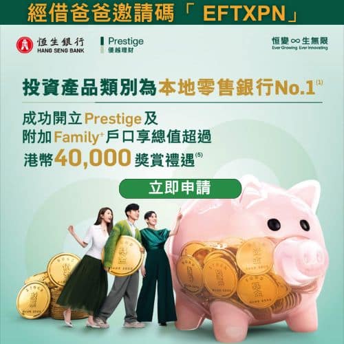 | 恒生 Prestige 卡 | 永久豁免 | 本地無上限 0.4%回贈 | 本網暫時無禮遇 |