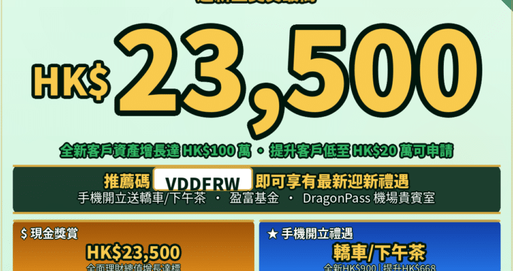 迎新獎賞總值 HK$2,026:用推薦碼『KA54V3』開戶拎齊所有著數